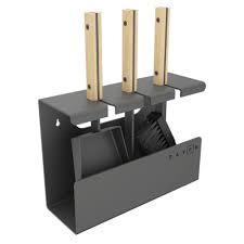 набір має по три елементи, необхідні для догляду за каміном: лопатка для попелу, щітка і кочерга;