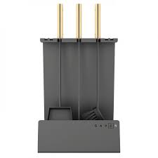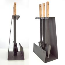 набір має по три елементи, необхідні для догляду за каміном: лопатка для попелу, щітка і кочерга;