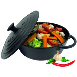 Чавунна каструля на 5,7 л. від компанії Plamen - найкраща ідея для подарунка Якщо ви не уявляєте своє життя без багаття, тоді у нас для вас є чудовий варіант товару для вашого будинку або подарунку. Каструля із чавуну від Plamen на 5,7 л. нагодує всю сім'ю, що зібралася за столом. Чому варто купити каструлю Plamen? Кожен товар у той чи інший спосіб приваблює своїх покупців. Каструля чавунна з кришкою Plamen має такі переваги: Для виготовлення використовується якісний чавун. Має товсті стінки, завдяки яким зберігається все смакове багатство та аромат. При використанні натуральних рослинних олій посуд набуває антипригарних властивостей. Після приготування страва довго зберігатиме тепло. Немає потреби постійно тримати каструлю на розігріві. Чавунна каструля 5,7 л в наявності в інтернет-магазині . Готуйте найсмачніші страви у найкращому посуді від Plamen! Додаткові переваги: поверхня покрита санітарної емаллю стійкою до кислот. підходить для духовок температурою до 240 C Матеріал: високоякісний чавун. Не використовуйте виріб у мікрохвильовій печі. Ретельно мийте посуд в гарячій воді з додаванням миючого засобу після кожного використання. У нижній частині кришки (для каструль і сковорідок) є виступи, де збирається конденсований пар. Це дає можливість рівномірному приготуванню продуктів під час приготування, що робить їх більш соковитими і смачними.