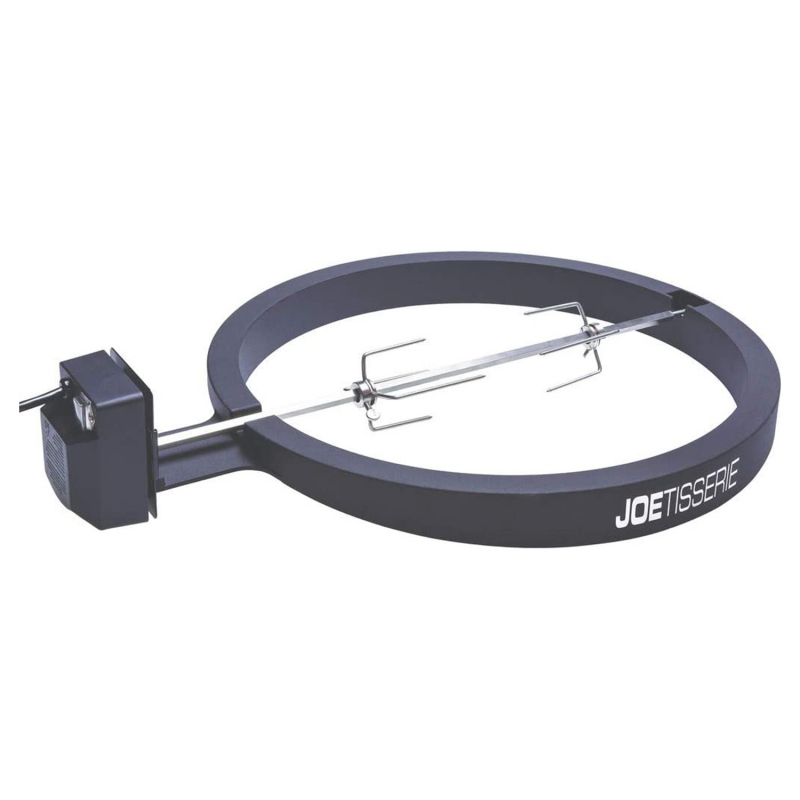 Міцне рожно JoeTisseri, зроблений з алюмінію, підніме ваш гриль Kamado Joe на нові вершини. Клиноподібна форма дозволить повністю опускати кришку гриля для утримання тепла. Рожно легко встановлюється, а регульовані вилки допоможуть ідеально збалансувати продукт. Постійне, стабільне обертання збереже натуральні соки м’яса, та забезпечить його рівномірне приготування. Завдяки потужному мотору ви можете готувати куряче, яловиче або свиняче м’ясо вагою до 23 кг.