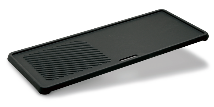 Суцільний двосторонній чавунний деко 1/3 з гладкою гриль-майданчиком, рифленою поверхнею і отвором для стікання жиру. Застосовується в газових грилях Enders Monroe 3