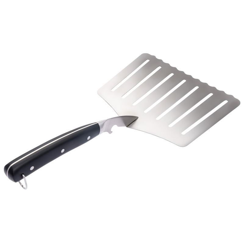 Лопатка Oklahoma Joe’s® Blacksmith зробить вашу роботу з великими шматками м’яса простіше, ніж будь коли раніше. Її збільшена робоча частина призначена для захоплення бріскета та інших великих отрубів м’яса з мінімальним зусиллям, а коротка вертикальна рукоять забезпечить максимальний контроль і легкість в застосуванні.