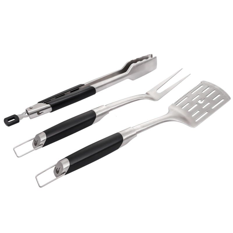 Майстер барбекю потребує професійного набору інструментів. У преміальному наборі інструментів з трьох предметів Char-Broil Medallion є все, що вам потрібно. Вилка, лопатка і щипці з надійними ручками і конструкцією з нержавіючої сталі зроблять процес готування на грилі простим і зручним.