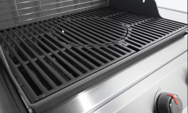 - Чавунна решітка Gourmet BBQ з покриттям порцелянової емалі: запобігає налипанню продуктів на поверхню, забезпечує рівномірний розподіл жару та гарний візерунок.