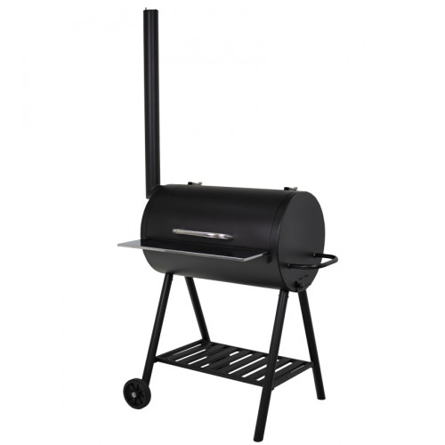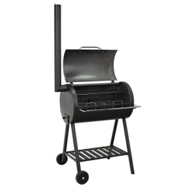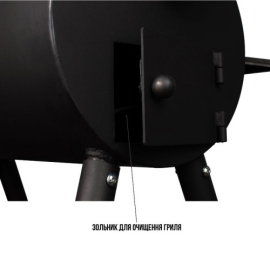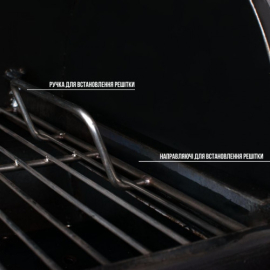 Комплектація: гриль, полиця для інвентарю, полиця з нержавіючої сталі, димар, ручка для переміщення, 2 решітки гриль з харчової нержавіючої сталі, кочерга, 2 колеса.