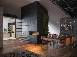 Достаточно вставить биокамин Infire Inside P 1100 Vers 2 в подготовленное отверстие. Версия P с открытой ПРАВОЙ стороной . Такое решение позволяет наблюдать за огнем из двух сторон также очень эффективное заполнение перехода между помещениями.