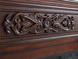 Модель є вдалою альтернативою традиційному дров’яному каміну за функціональними та декоративними параметрами. Електрокамін виготовлений із високоякісних матеріалів, відповідає вимогам безпеки й енергоефективності, простий в експлуатації. Матеріал камінного порталу – МДФ – здатний витримувати не лише значні перепади температур і підвищену вологість, але й більш стійкий до навантажень, ніж аналоги з цільної деревини. Портал покритий декількома шарами фарби та лаку.