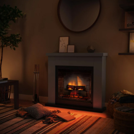 Реалістичний вогонь із цегляним інтер’єром, 3D-полум’ям, м’яким підсвічуванням та заспокійливими звуками потріскування.