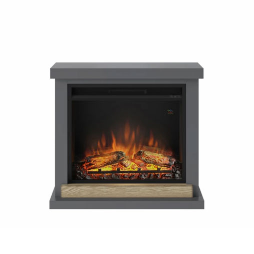 Ви будете захоплені декоративним облицюванням з натурального дубового шпону, пофарбованого в сірий колір. Ця камінна обудова настільки легка, що її просто переміщати між кімнатами і легко зібрати.