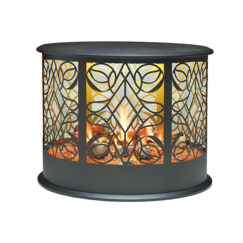 У каміні задня стінка являє собою LED-поверхню, на яку проектується реалістичне зображення яскраво палаючого вогнища з іскрами, що розлітаються. У каміні передбачений і звуковий ефект потріскує полін. Ця серія вогнищ не вимагає палива, камін працює від електромережі.