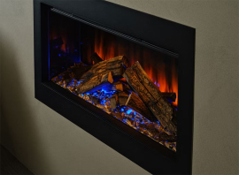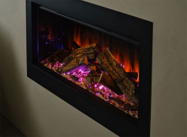Електричний камін Ashlett з заводу комплектується Справжніми Дровами Deluxe. Поліна британського дуба та підкладка, оздоблена корою та деревною стружкою, оживають при помаранчевій чи червоній підсвітці знизу.