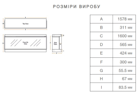 | Габарити ВxШxГ: | 56.50 см × 157.80 см × 30.00 см | |