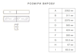 | Габарити ВxШxГ: | 56.50 см × 235.20 см × 30.00 см | |