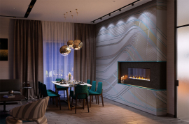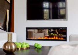 Низькопрофільна конструкція корпусу і скло в каміні Ігнайт від краю до краю забезпечує панорамний вид на полум'я під будь-яким кутом, і ідеально підходить для установки в стіну або меблі.