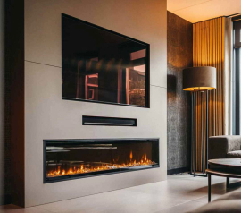 Низькопрофільна конструкція корпусу і скло в каміні Ігнайт від краю до краю забезпечує панорамний вид на полум'я під будь-яким кутом, і ідеально підходить для установки в стіну або меблі.