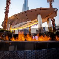 Газові каміни лінійної форми також виготовлені зі стійких до погодних капризів матеріалів. Базова конструкція має розміри 1000х230х160 мм з урахуванням висоти опор, маса пристрою – 21 кг. Призначені виключно для використання на відкритому повітрі, газові каміни для вулиці