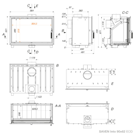 Камінна вставка SAVEN - це високі показники продуктивності, потужність та ККД. Ефективне горіння і допалювання піролізних газів можливі завдяки передовим рішенням поєднання футерування камери згорання шамотом товщиною 35 мм та вермикулітом товщиною 30 мм.