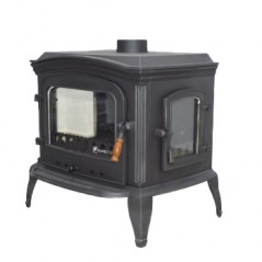 Країна виробник: Туреччина Розміри: Висота : 75 cm Ширина : 70 cm Глибина : 55 cm Вага : 121 kg Потужність: 10 kw Розмір димоходу : 130 mm Розмір лобового скла : 415 mm x 250 Розмір лівого скла : 220 mm x 260 Розмір правого скла : 200 mm x 240 mm Maтеріал:Чавун Він повністю виготовлений з чавуну. З 3 сторін, спереду і з боків Існує стійке до високих температур (німецьке Schott Robax) керамічне скло, і ці скла повністю герметичні у виробі за допомогою вогнетривкого скляного гніту. Решітка камери згоряння печі виготовлена з лиття особливої міцності. Лобове скло з чавуну не тьмяніє та не залишає плям завдяки спеціально розробленій системі вентиляції. Завдяки спеціальній задній системі повітряного балансу забезпечується ефективне згоряння перед першим спалюванням і під час допалювання, щоб спалити залишки, що утворилися під час копчення та допалювання, шляхом видалення мертвих вуглецевих газів із перших полін згоряння. За допомогою цієї системи максимальна ефективність досягається за рахунок мінімального використання палива в печі. Завдяки бічній скляній кришці підкидати дрова під час горіння зручніше, а наявність скла з обох сторін з естетичних міркувань додає виробу додаткової елегантності. Завдяки бічній кришці додавання палива полегшується, а дим, який утворюється, якщо кришку відкрити під час згоряння, мінімізується. Як паливо використовуються дрова.