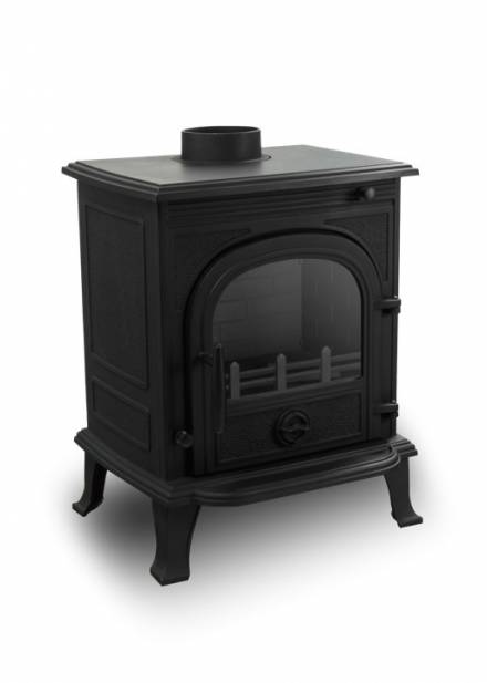 Чавунна піч-камін Nordflam ANCONA. Матеріал виробництва дозволяє тривалий час після нагріву, розподіляти тепло. Також завдяки вишуканому дизайну, не потребує облицювальних матеріалів.