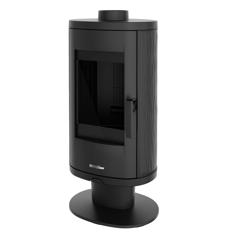 Чавунна піч-камін Nordflam AUGUSTA. Матеріал виробництва дозволяє тривалий час після нагріву, розподіляти тепло. Також завдяки вишуканому дизайну, не потребує облицювальних матеріалів.
