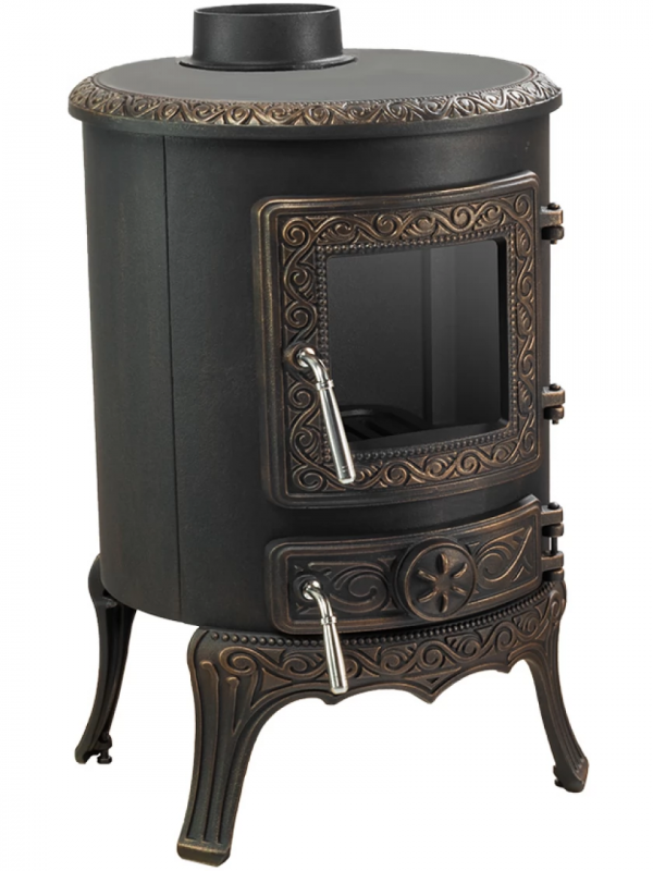Чавунна піч-камін Nordflam Palestro Patyna. Матеріал виробництва дозволяє тривалий час після нагріву, розподіляти тепло. Також завдяки вишуканому дизайну, не потребує облицювальних матеріалів.