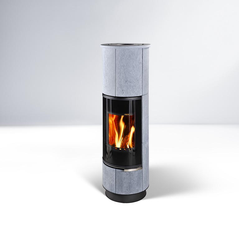 Піч-камін Thorma DELIA Standard Serpentino - це функціональна піч циліндричної форми з елегантним дизайном. Облицювання печі з кераміки додає зовнішньому вигляду привабливості та сприяє його збереженню в процесі тривалої експлуатації. Вона з округлими формами як топки, так і корпусу.