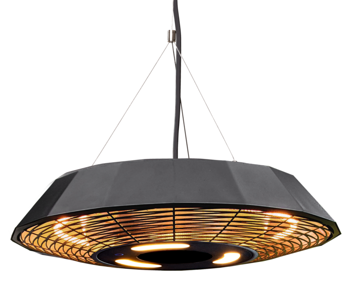 Представляємо новий і стильний купольний підвісний електричний інфрачервоний обігрівач Enders Marbella з потужною галогенової лампою, окремо вмикаємою LED-підсвіткою, пультом дистанційного керування і сталевим тросом з карабіном для стельової фіксації. Enders Marbella - це універсальний підвісний інфрачервоний обігрівач і люстра-світильник - 2в1. Він гарно підійе для обігріву літніх альтанок, терас, кафе, ресторанів, дачних будинків і заміських котеджів. Спеціальний відбивач рефлектор у вигляді купола направляє інфрачервоні промені вниз, обігріваючи площу до 16 м². Вбудована LED-підсвітка 3 незалежних режими: підсвітка/обігрів/підсвітка+обігрів Пульт дистанційного керування Пиловологозахист - IP 45 Монтажний трос і карабін у комплекті Гарантія - 2 роки