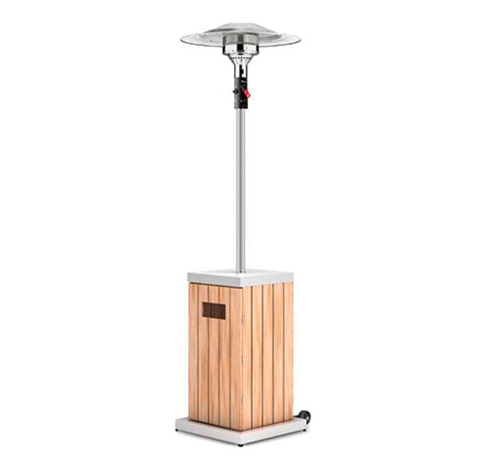Вуличний газовий обігрівач Enders Wood - це ідеальне доповнення до дизайну Вашої тераси або літнього майданчика ресторану. Контейнер виготовлений з високоякісної ясеневої деревини, оброблений спеціальним складом, який стійкий до ультрафіолетових променів і атмосферних опадів. Інші деталі обігрівача виготовлені з полірованої нержавіючої сталі. Швидке і безвідмовне запалювання пристрої забезпечено пьезорозжігом від фірми Einhand. Оснащений пальником потужністю 8 кВт при тепловіддачі 12 кВт, газовий ІК-обігрівач Cosystand Wood залишається незамінним, коли температура за вікнами опускається нижче + 15 ° С. Зручність зберігання і транспортування обігрівача обумовлено висотою в складеному вигляді всього 130 см і наявністю комплекту коліс для переміщення. Доступ до газового балона зручний, так як контейнер обігрівача оснащений дверцятами з магнітним замком.