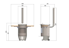 Переміщення сталевої перегородки всередині камери переводить прилад із режиму нагрівання в режим приготування за лічені хвилини. Перегородка відводить тепло від камери до гриля та забезпечує захист користувача під час приготування їжі. Технологія спалювання, яка використовується в нашому асортименті внутрішніх дров'яних печей, була адаптована для забезпечення ступеня контролю температури, яка унікально чутлива та реагує на барбекю.