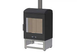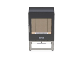 Нагрівач працює так само, як дров'яна піч, з одним важелем для керування потоком повітря в камеру, а отже, і рівнем тепла, що виділяється. Скляні дверцята дають змогу легко поповнювати запас палива, водночас завжди видно світіння полум'я.