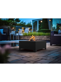 Пристрій повністю покритий чорним кольором, що додає вишуканості та елегантності. Камінна топка товщиною 3 мм забезпечує безпеку, а отвори в ній забезпечують легкий доступ повітря, що сприяє процесу горіння. Завдяки сучасній квадратній формі він чудово виглядає на простих геометричних відкритих майданчиках і не займає багато місця.