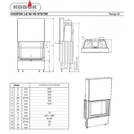 Конструкція камінних топок Kobok виповнена із сталі та пофарбована екологічною фарбою. Камера згорання облицьована шамотом, оснащена чавунною решіткою та місткою попільничкою. Дверцята зсередини обрамлені дуже естетичним оздобленням з нержавіючої сталі та засклені спеціальним прозорим склом, яке витримує 750 градусів.