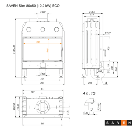 Сталева камінна топка SAVEN Slim 80х50 (12,0 kW) ECO — це поєднання перевірених технологій та нових інженерних рішень, створених з урахуванням потреб сучасних користувачів. Модель належить до нової серії Slim, і є ідеальним варіантом для тих, хто шукає ефективне джерело тепла з великим оглядом полум’я, мінімалістичним дизайном і зручною конструкцією.